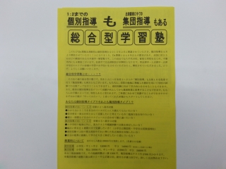 「総合型学習塾」とはその名の通り塾の総合です。「個別指導部門」と「集団指導部門」の2つを柱として授業を行います。「進学受験対策」はもちろん「学校の定期試験対策・補習」も行います。もちろんお子様にあった形態から学習をスタートすることができますので安心して下さい。例えばまずは週1回1科目から個別指導で通塾して、塾に慣れてきたころから集団指導に切り換えることもできます。わからない所を自分のペースでじっくり教えてほしい方、苦手科目・単元を何とかして克服したいという方、曜日・時間など自分のスケジュールに合わせて通いたい方には個別指導をお勧めします。また、小中学校の学習以外に実力テストや模擬試験での成績を伸ばしたい方、幅広い科目を1週間の中で受講したい方、高校受験で上位の千葉県公立高校や私立高校を目指したい方、自分の限界に挑戦して学力を大きく伸ばしたいと望んでいる方には集団指導をお勧めします。まずは、どんな目的(目標)を持って塾に通いたいのかを考えてみてください。