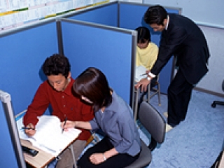 流れ:まずはお電話からご連絡いただき、来訪予約をしていただきます。その後来訪していただき、科目・単元・授業日時を決定します。そして、講習会スタートです。全4回の授業終了後にどのくらい効果が出たか個別に講習報告会を行います。